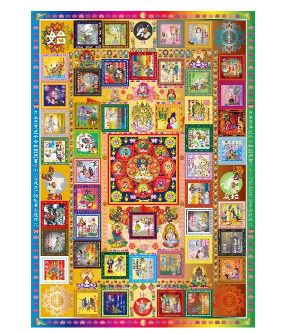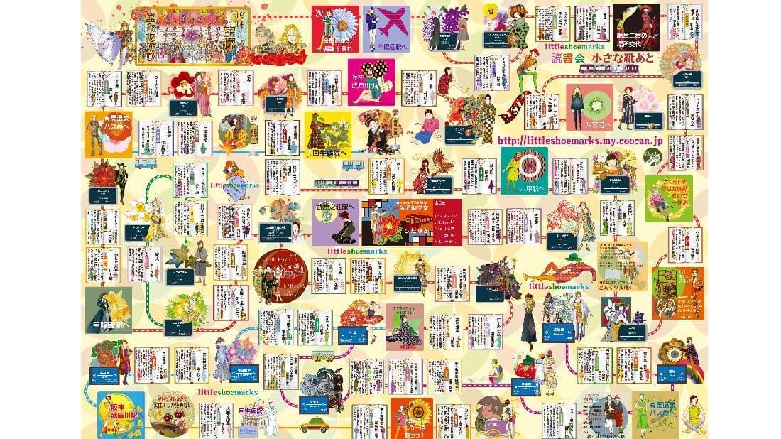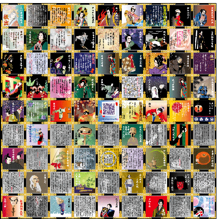 河出書房新社の『日本文学全集8』より、『日本霊異記』と『今昔物語』を合体した双六です。読書会の理解のために作成されました。ともに仏教説話集という共通点があり、曼荼羅的なデザインとなりました。