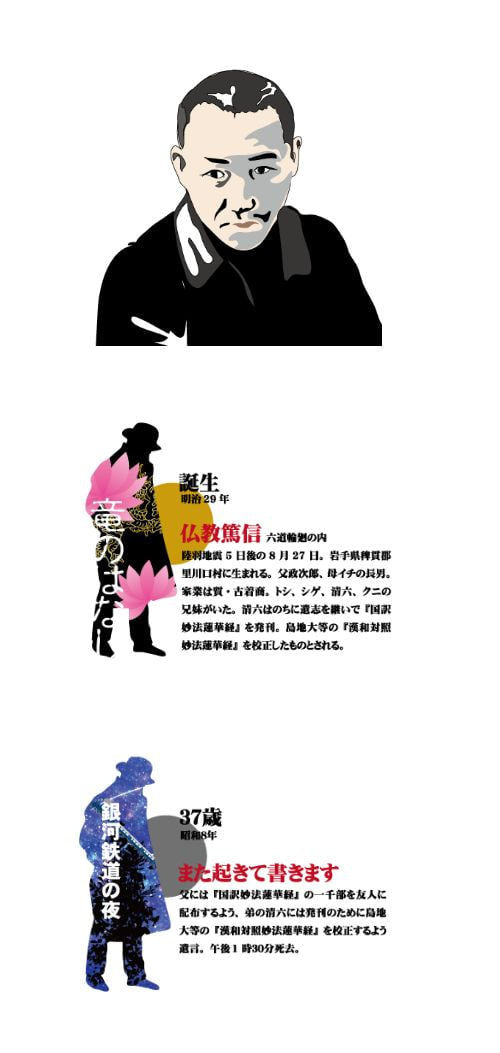 教科書に載った宮沢賢治の詩や物語、大人になって読むと違う世界が立ち現れてきます。彼の辿った人生を追いかけながら物語を紐解いてみる試みの双六です。