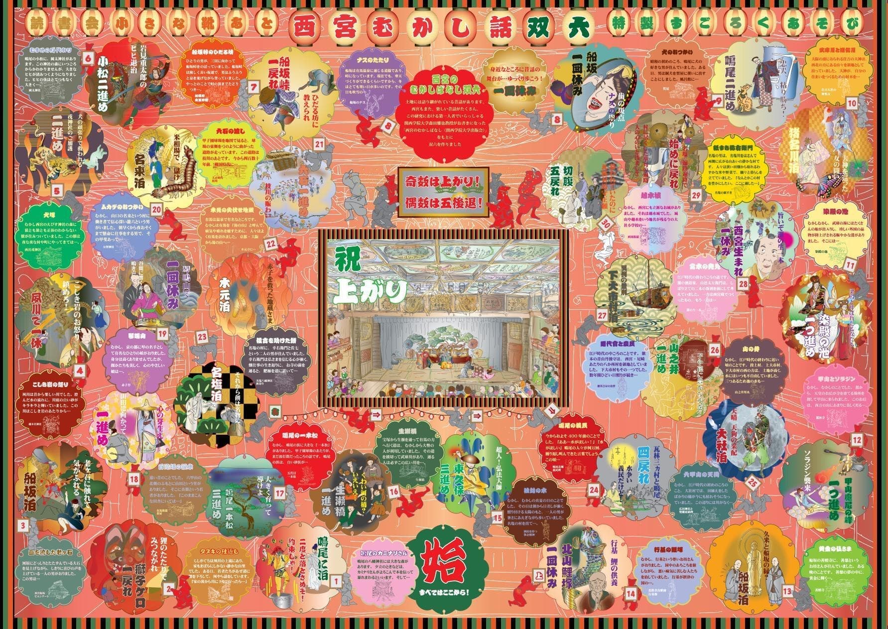 関西学院大学文学部森田雅也教授『西宮のむかし話』を双六にしています。兵庫県西宮市にもたくさんの昔話が残っています。郷土の歴史を学ぶきっかけになるような地域文化の双六です。