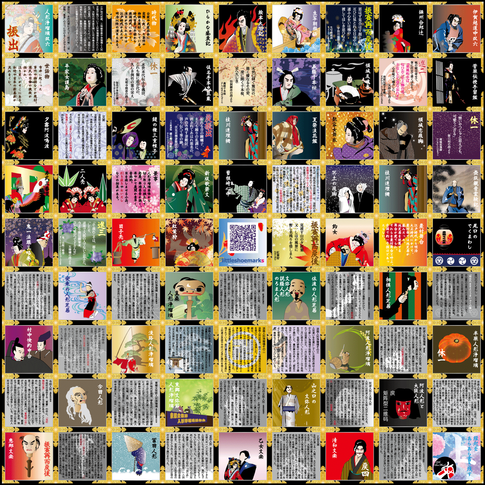 近畿大阪は人形浄瑠璃が盛んな地です。兵庫県も深い歴史があります。歌舞伎の前は人形浄瑠璃が娯楽の花形でした。繁栄の名残りのように各地には農村舞台が今も残っています。浄瑠璃の演目と共に農村舞台も紹介した地域文化双六です。