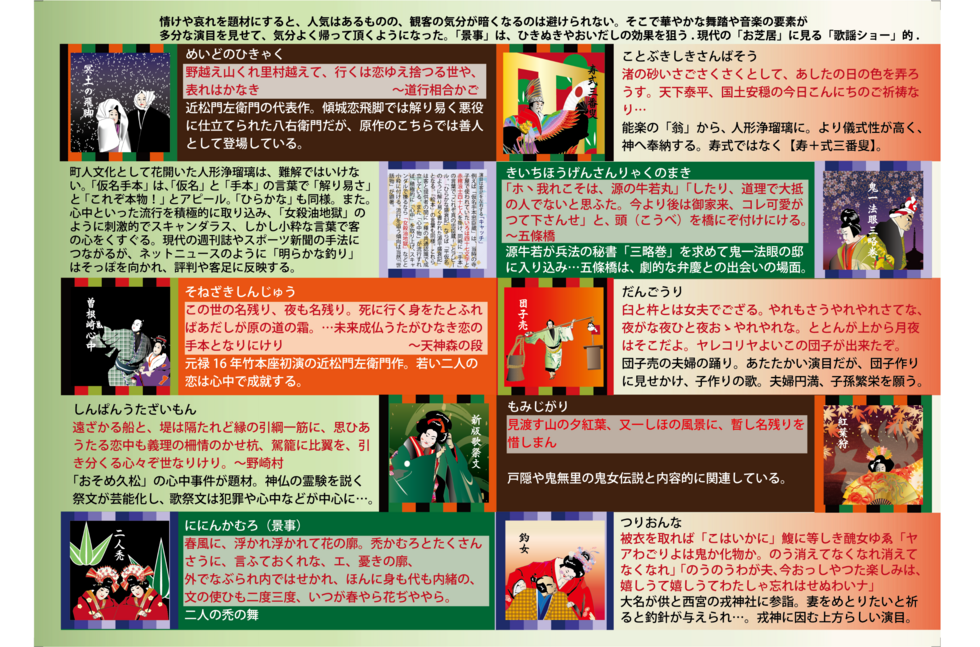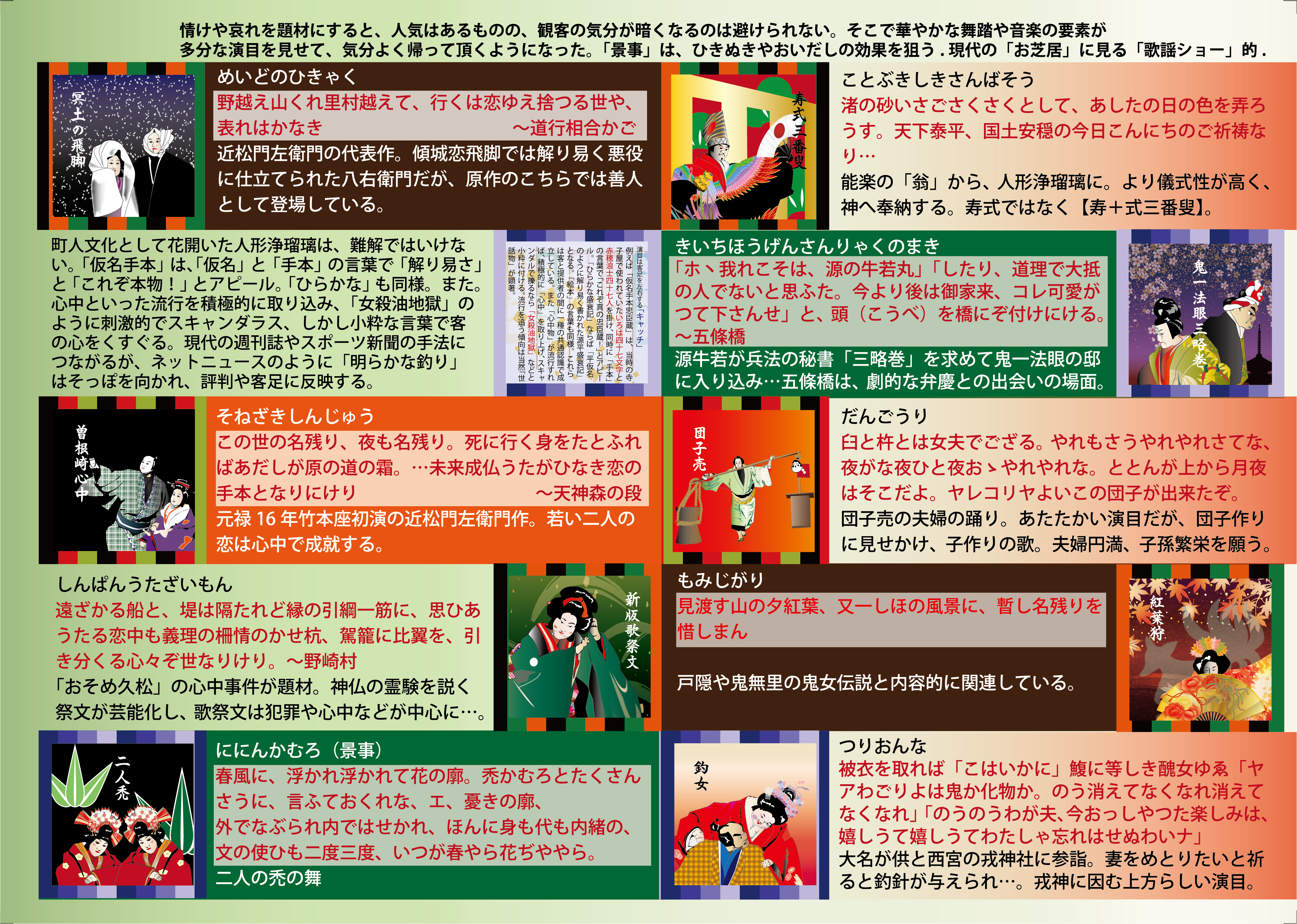 大学の講義用に作成された関係もあり、伝統文化を学ぶ目的で解説本を付けています。ユネスコの無形文化遺産です。歌舞伎や狂言の中心が東京に移動してしまいましたが、文学は上方中心です。